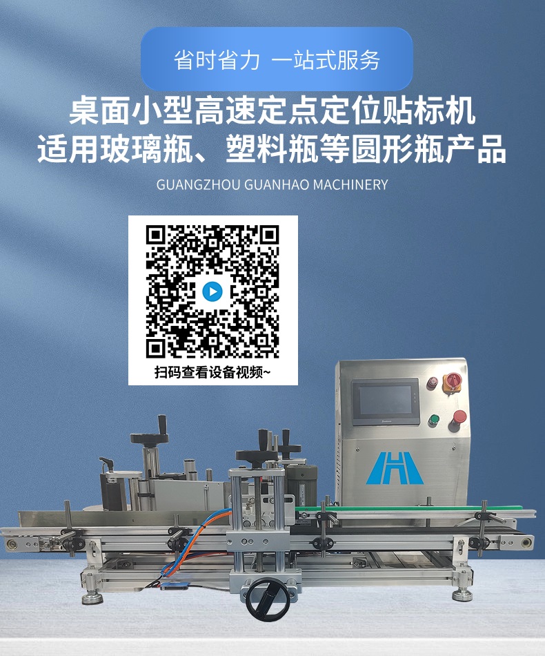 廣州冠浩桌面式小型全自動貼標機定點定位貼標設備,適用于各類圓形瓶產品貼標,歡迎來樣試機,試用滿意再付款!心動不如行動,我們等工廠等您......